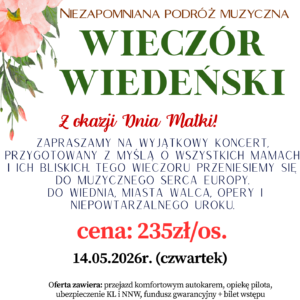 - bezpieczeństwo i wygodę – autokary naszego biura turystycznego są regularnie serwisowane i wyposażone w klimatyzację, wygodne fotele, systemy audio-video oraz toalety (w wybranych modelach). Bezpieczeństwo pasażerów jest dla nas priorytetem;